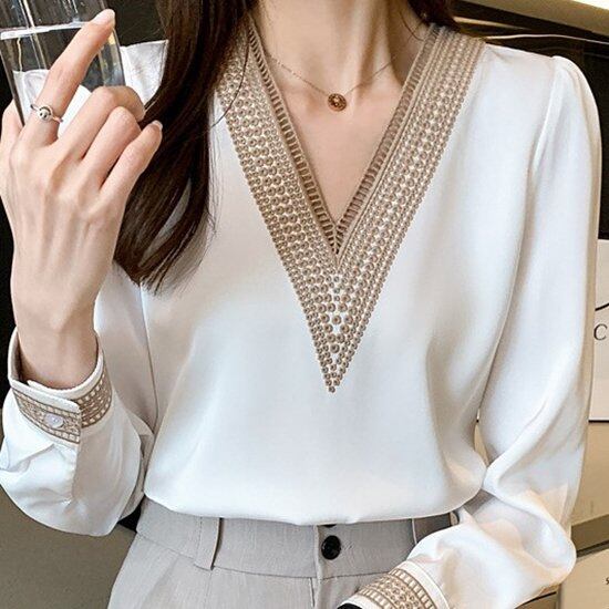 ブラウス レディース トップス ふんわり とろみ レトロ かわいい ブラウス シフォンシャツ オフィス 通勤 とろみ素材 Vネック シャツ おしゃれ 新作 ブラウス レディース トップス
