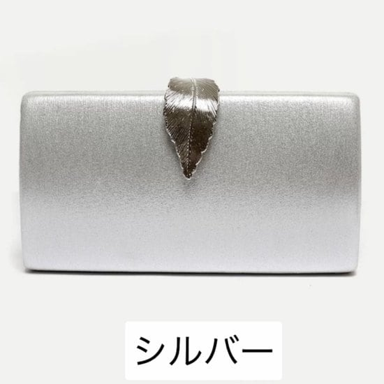 リーフの留め具がデザインのポイントのクラッチバッグ。