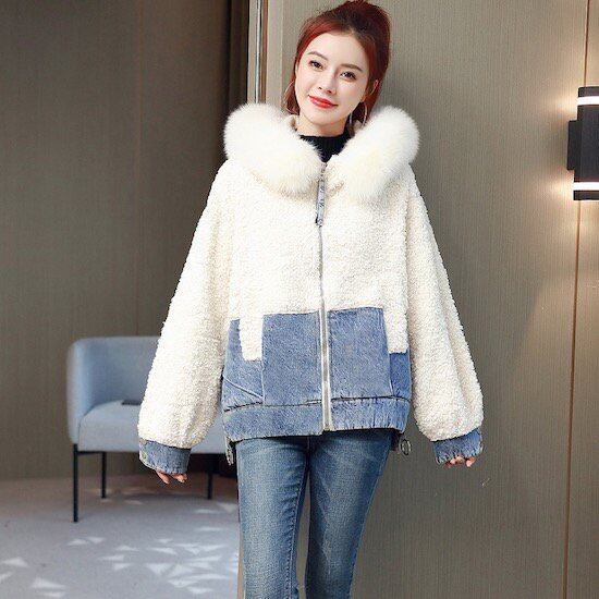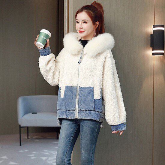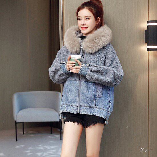 デニムジャケット レディース アウター フード付き デニム切り替え 長袖 ビッグシルエット ゆったり あったか ふわもこ 大人可愛い 大きいサイズ デニムジャケット レディース アウター フード付き