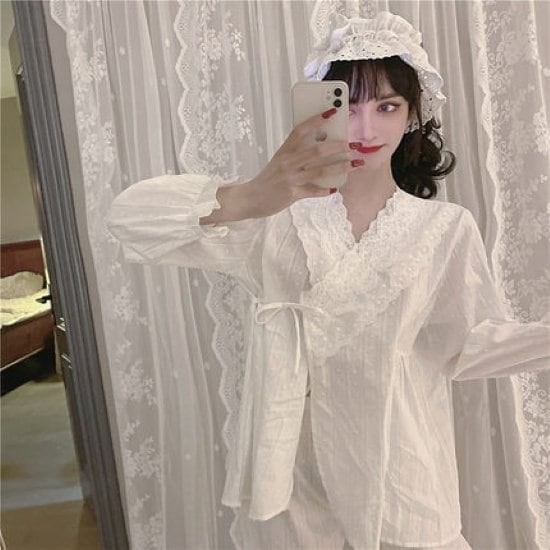 レース素材を使ったルームウェア。