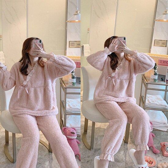 ルームウェア セットアップ もこもこ かわいい パジャマ 部屋着 ルームウェア 2点セット リボン ルームウェア パジャマ もこもこ パンツ レース おしゃれ ルームウェア セットアップ かわいい