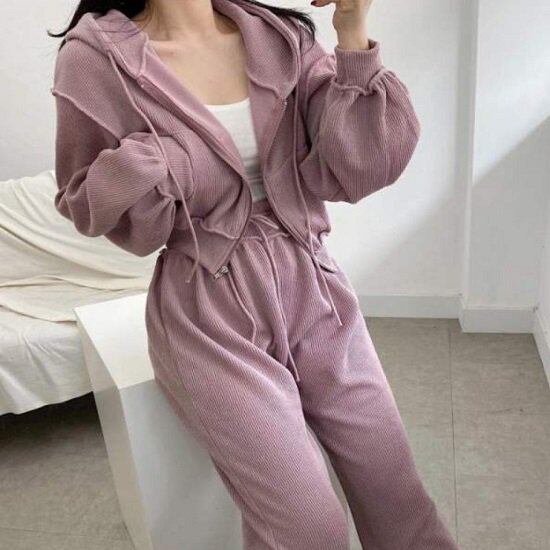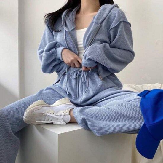 ハイウエストパンツにショート丈パーカーで嬉しいスタイルアップ効果!