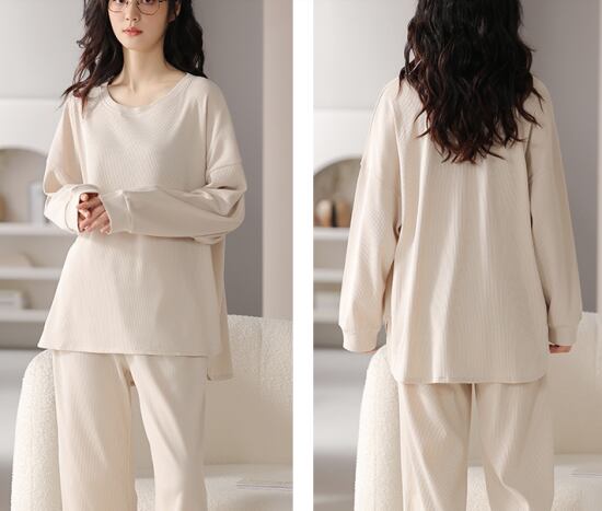ルームウェア レディース パジャマ 上下セット 2点セット 長袖長ズボン シンプル 無地 ラウンドネック リラックス ゆったり カジュアル おうち服 寝巻き 部屋着 プルオーバー 秋 ツーピース