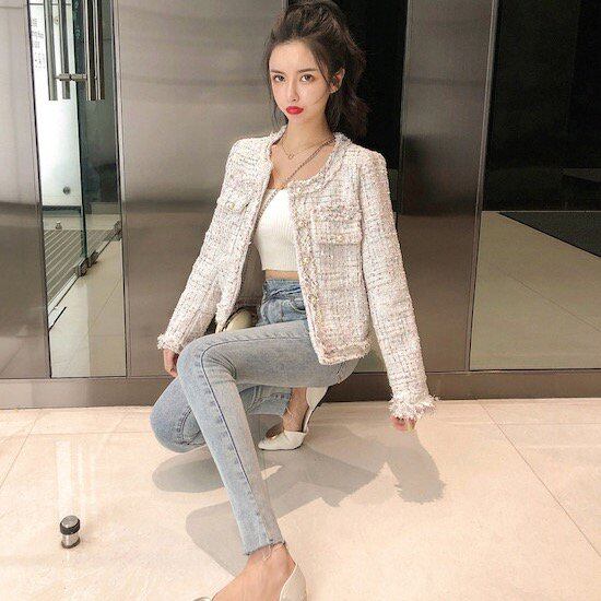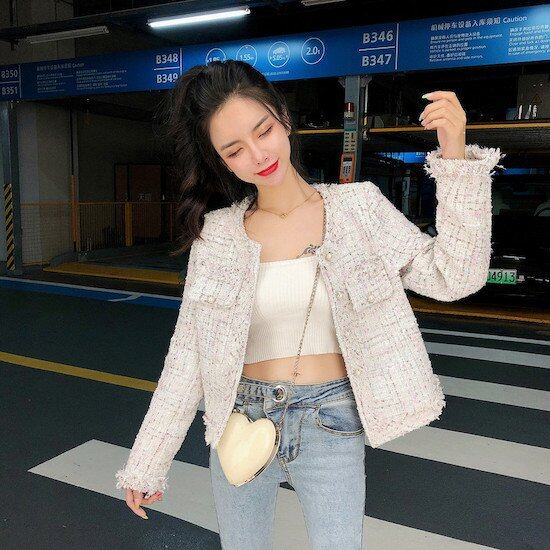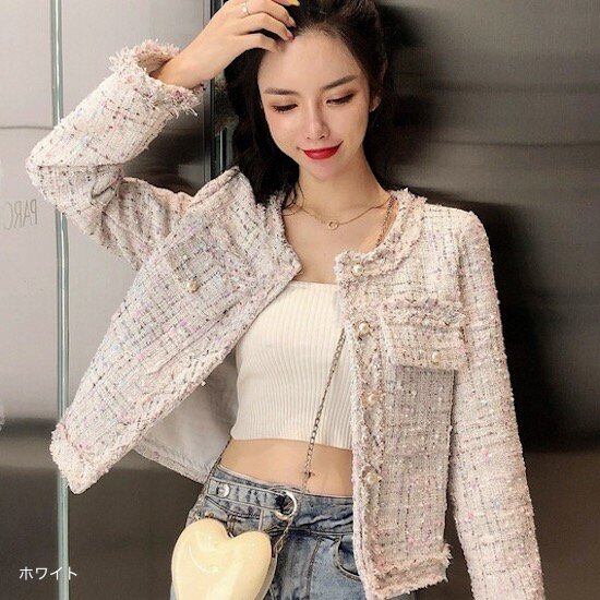 ツイードジャケット レディース アウター 長袖 ノーカラージャケット ツイードカーディガン ツイードパターンジャケット ライトアウター ツイードジャケット レディース アウター 長袖 ノーカラー