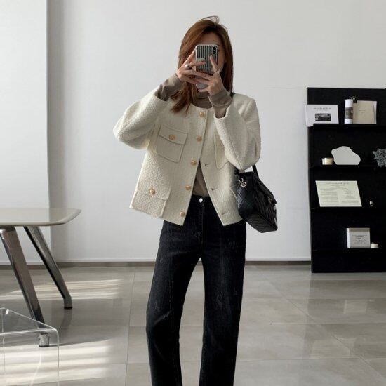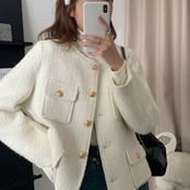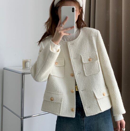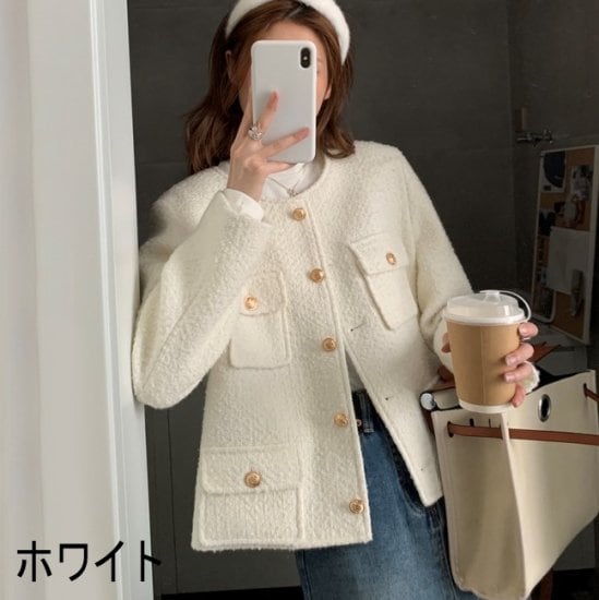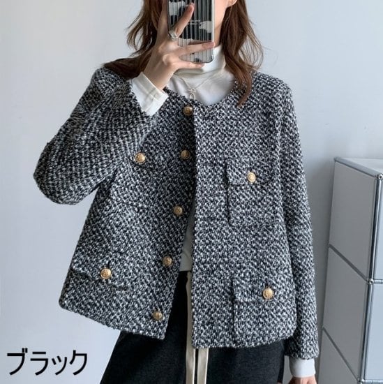 ジャケット レディースジャケット ノーカラージャケット ショートジャケット ツイードジャケット ジャケット秋冬 冬新作 ツイード カジュアル 通勤 オフィス エレガント 金ボタン 可愛い 暖かい