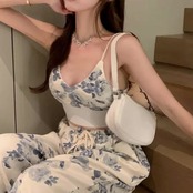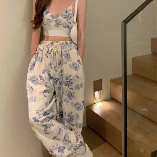 ルームウエア キャミソール パンツ 2点セット レディース ダンスウェア 部屋着 花柄 パンツ ダンス フィットネスウェア ヨガウェア フィットネス ジム スポーツウェア 春夏 リラックス