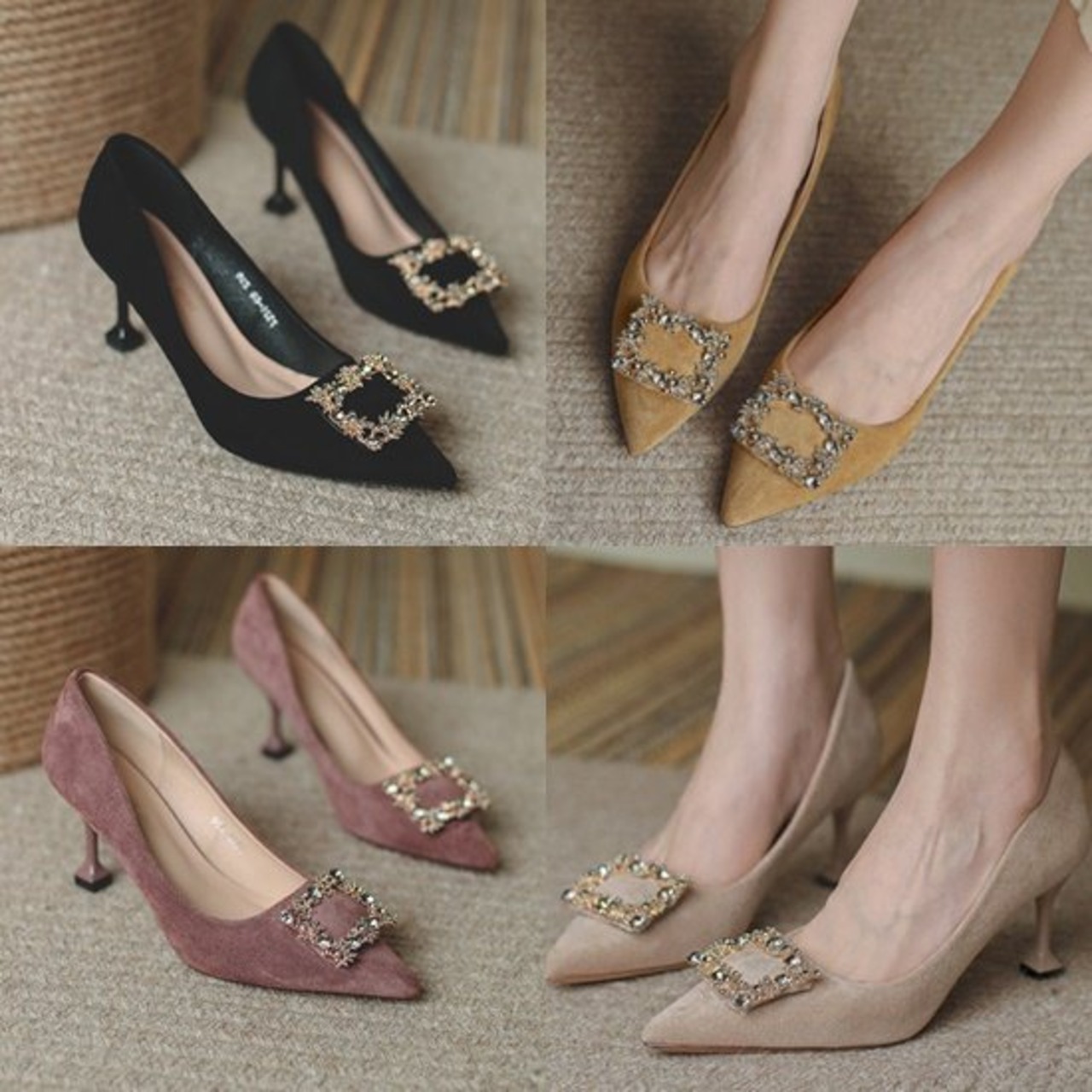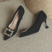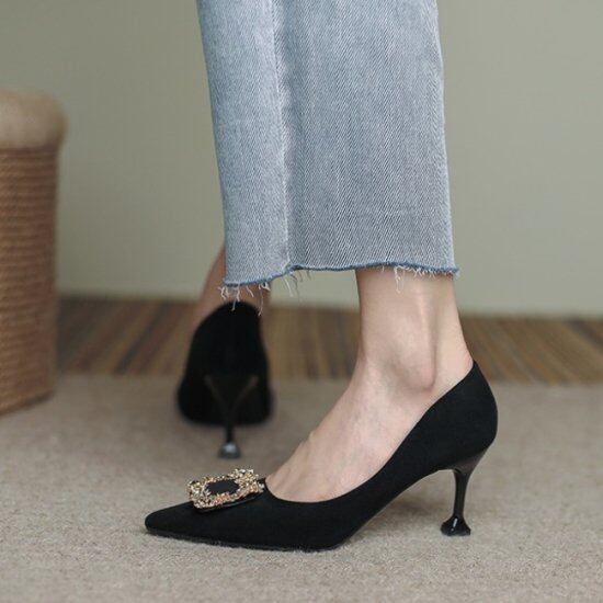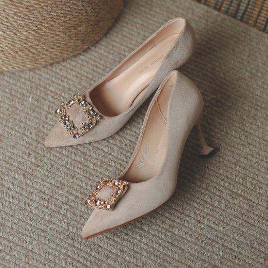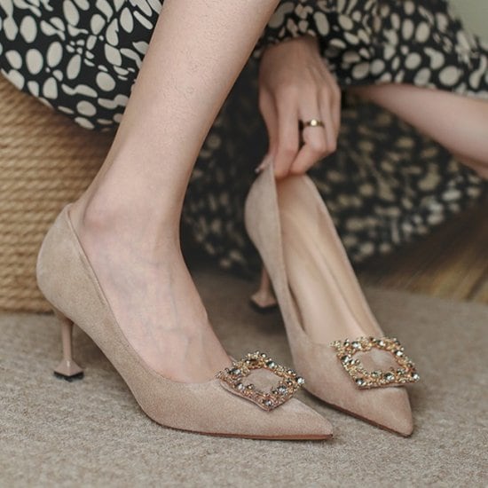 パンプス キラキラ ビジュー レディース 韓国 ファッション ゴージャス スクエア スエード パーティシューズ ヒール 5.5cmヒール 大人パンプス きれいめパンプス 結婚式二次会 お呼ばれシューズ