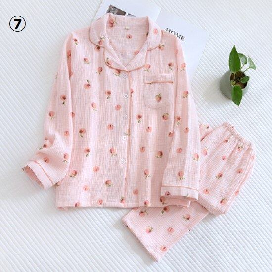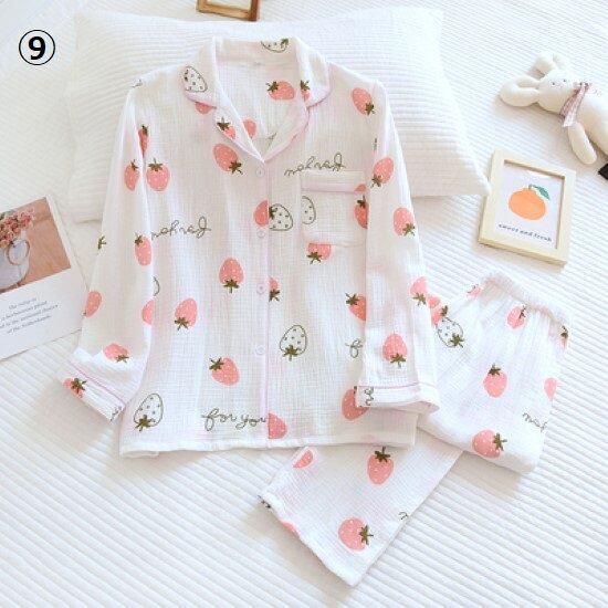 ルームウェア レディース パジャマ フロントボタン 前開き リラックス ゆったり 上下セット ナイトウェア 2点セット おうち服 リラックス カジュアル プリント 長袖長ズボン ホームウェア コットン