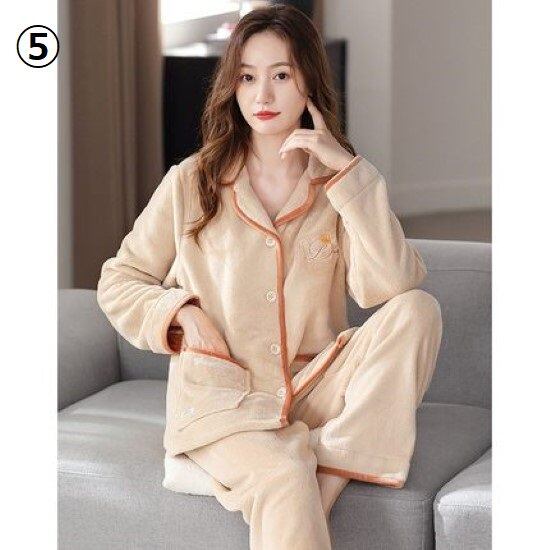 ルームウェア レディース パジャマ フリース フランネル 厚手 ふわふわ 秋冬 長袖長ズボン 襟あり 前開き フロントボタン ナイトウェア 部屋着 寝巻き おうち服 リラックス ゆったり カジュアル