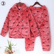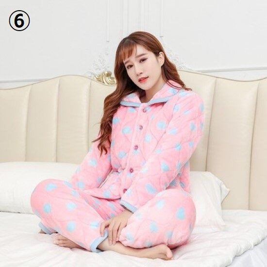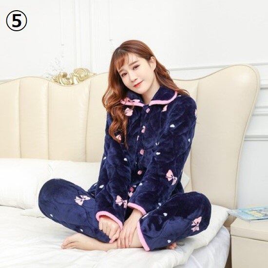 ルームウェア レディース パジャマ 厚手 冬 暖かい フロントボタン 前開き 長袖長ズボン 襟あり キルティング プリント模様 2点セット 上下セット ホームウェア おうち服 部屋着 リラックス