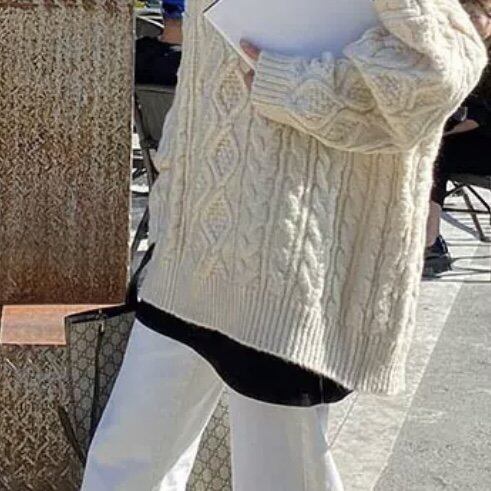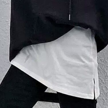 パーカーやニットの下に合わせて体型カバーにもおすすめのアイテム。