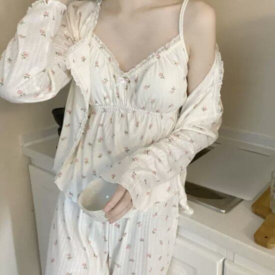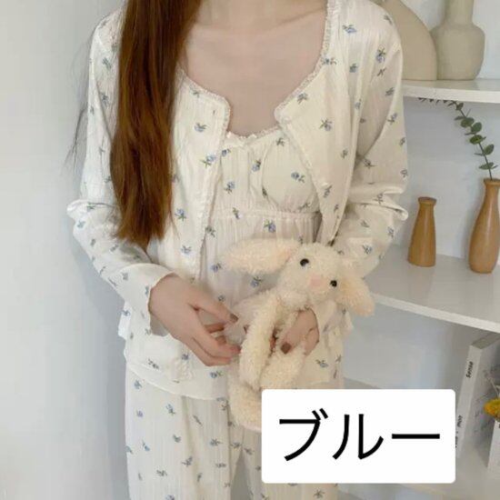 ルームウエア 小花柄 ナイトウエア パジャマ 部屋着 レディース 寝巻3点セット 上下セット セットアップ キャミソール カーディガン パンツおしゃれ オシャレ お洒落 春夏 秋冬 かわいい