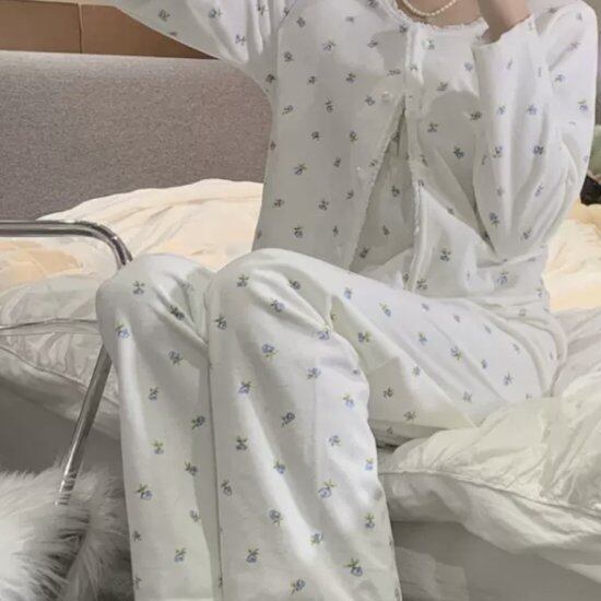 小花柄が女性らしくかわいい、キャミソールとカーディガン、パンツの3点セット。
