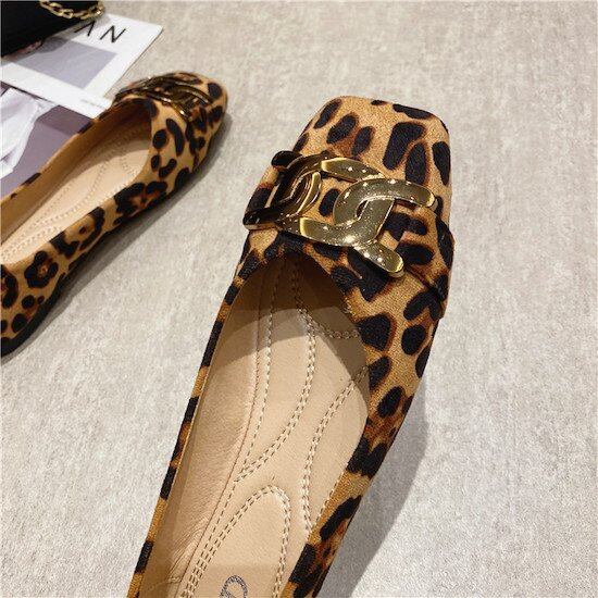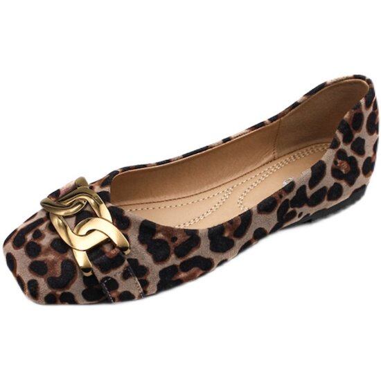 フラットパンプス レディース スクエアトゥ ぺたんこ パンプス シューズ 歩きやすい レオパード メタルバックル アニマル 痛くない 柔らかい フラットパンプス レディース スクエアトゥ ぺたんこ