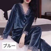 ルームウエア パジャマ レディース 秋冬 長袖 レース Vネック セクシー ベルベット 暖かい 上下セット 可愛い 部屋着 おしゃれ 大人 もこもこ 光沢 セクシー エレガント 上下セット