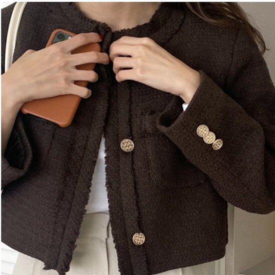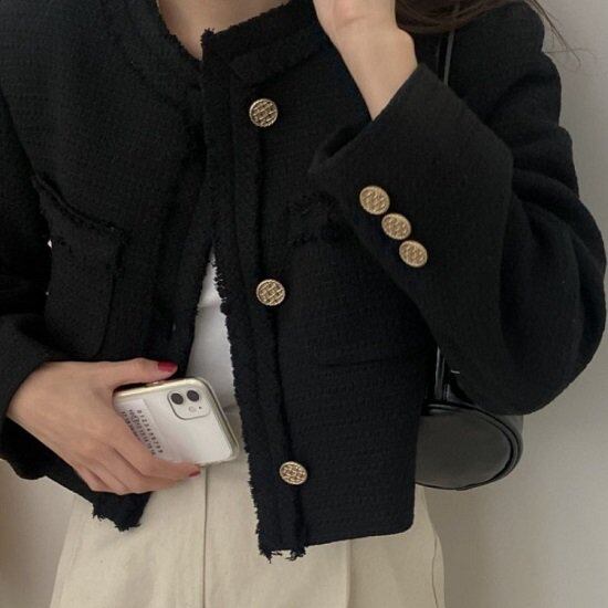 ジャケット レディース ツイード柄 ショート丈 コート レディース ノーカラー ボタン ゴールド アウター ジャケット コート きれいめ おしゃれ かわいい ジャケット レディース ツイード柄