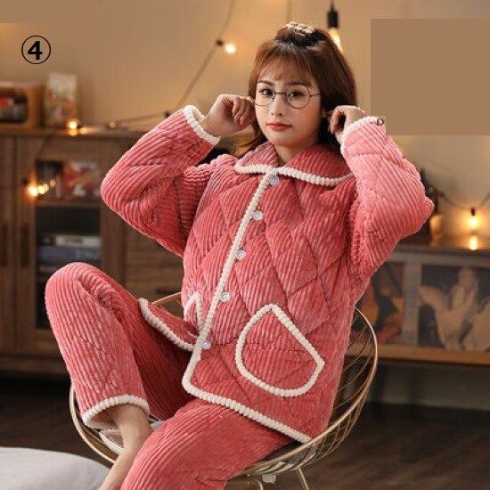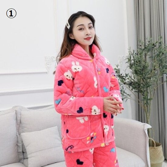 ルームウェア レディース パジャマ 厚手 冬 暖かい フロントボタン 前開き 長袖長ズボン 襟あり ポケット 可愛い 上下セット ホームウェア おうち服 部屋着 リラックス キルティング