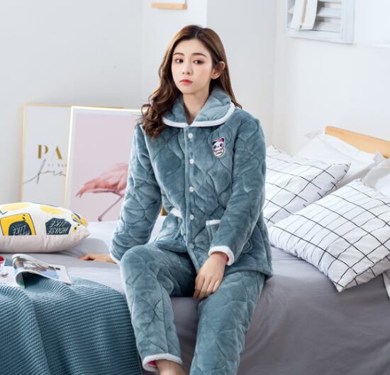 ルームウェア レディース パジャマ パンダ柄 ワンポイント アニマル 可愛い 厚手 ふわふわ 冬 暖かい フランネル ポケット 前開き フロントボタン ホームウェア おうち服 ナイトウェア 部屋着