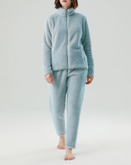 ルームウェア レディース パジャマ メンズ ユニセックス お揃い ペアルック シンプル 無地 スタンドカラー フリース ふわふわ 暖かい 冬 フロントジッパー おうち服 ホームウェア ツーピース