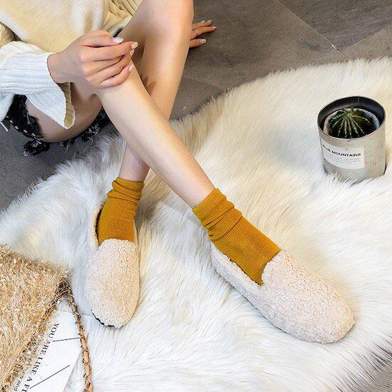 モカシンシューズ レディーズ もこもこシューズ ふわもこパンプス あったか フェイクムートン フェイクファー ラウンドトゥ 防寒 暖かい モカシンシューズ レディーズ もこもこシューズ ふわもこ