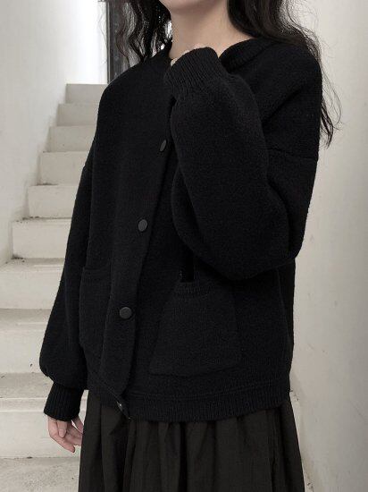 シックなブラックのカーディガン。