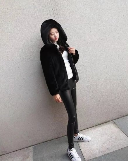 ファーコート レディース アウター 羽織 コート パーカー フード付き シンプル 無地 ふわふわ イミテーションファー 黒 ブラック ジッパー カジュアル お出掛け おしゃれ ファーコート レディース