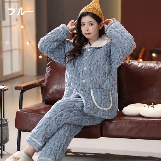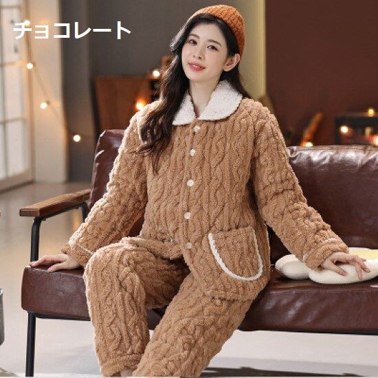 ルームウェア レディース パジャマ ふわふわ フランネル 厚手 暖かい ポケット シンプル リラックス ゆったり おうち服 襟あり フロントボタン 前開き ホームウェア 部屋着 ナイトウェア