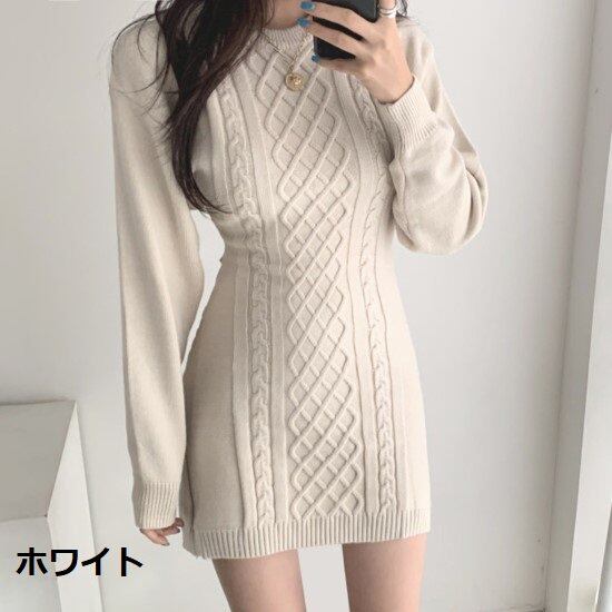 ニットワンピース レディース ミニワンピ ひざ上 ミニ丈 ワンピース 長袖 ハーフタートルネック プルオーバー 綿 コットン カジュアル お出掛け おしゃれ スリムフィット タイトスカート