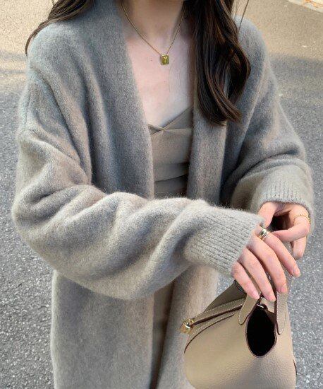 ニットカーディガン レディース カーディガン 羽織 アウター ライトアウター ウール 長袖 シンプル 無地 カジュアル お出掛け きれいめ ミディ丈 秋冬 ノーカラー ゆったり ニットカーディガン