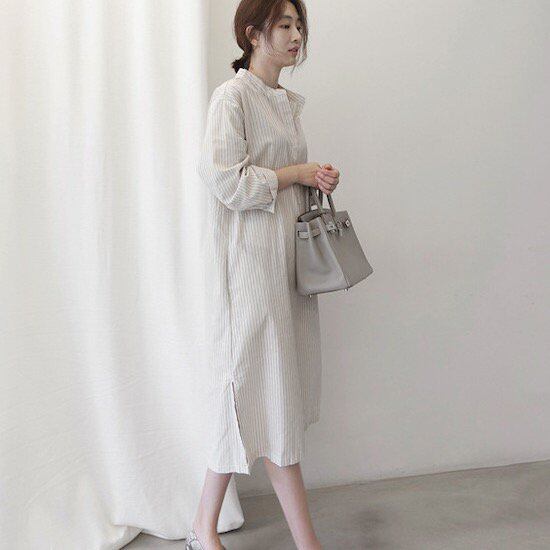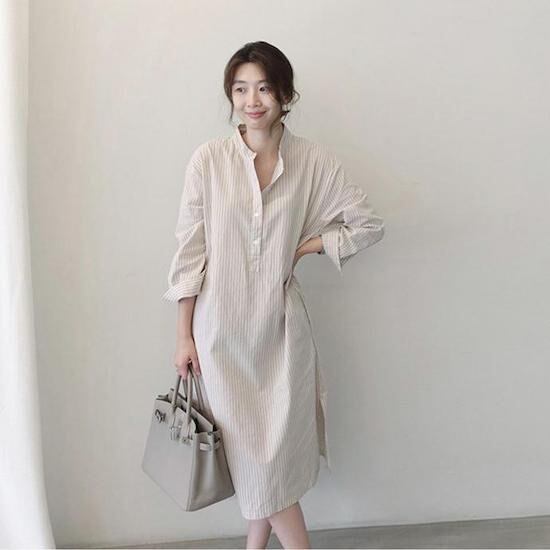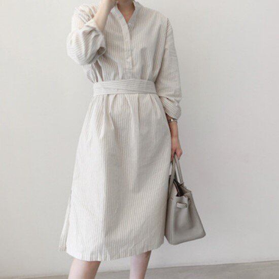 ストライプシャツワンピース 長袖 レディース トップス シャツ ブラウス 長袖ワンピース ひざ丈 ミディ丈 ストライプ柄 大人可愛い お出かけ デート ストライプシャツワンピース 長袖 レディース