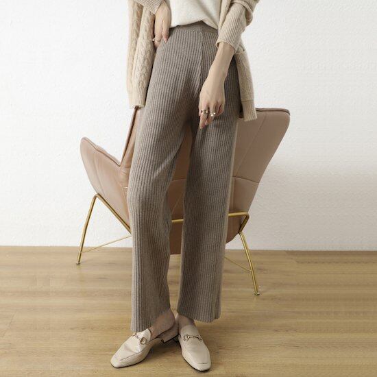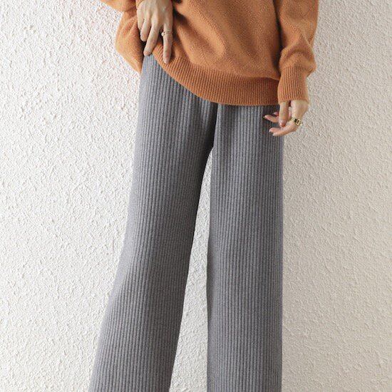 リブパンツ レディース ワイドパンツ ニットパンツ ゆったり パンツ ワイド ロング フレア フレアボトムス ハイウエスト リブニットパンツ おしゃれ リブパンツ レディース ワイドパンツ ニット