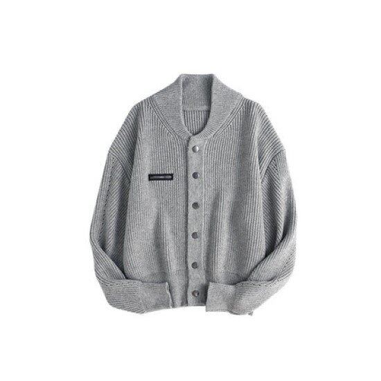 ニットカーディガン レディース カーディガン スタンドカラー 長袖 ボタン 羽織 アウター トップス カジュアル お出掛け シンプル 無地 グレー 秋冬 ワンポイント ゆったり ルーズシルエット