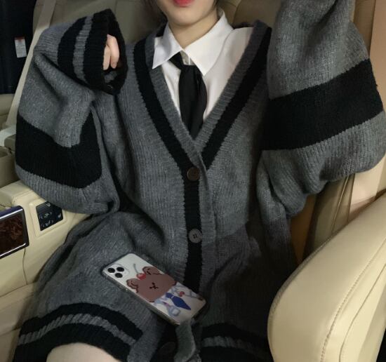 ニットカーディガン レディース カーディガン 配色 カラーブロック ゆったり ルーズシルエット 体型カバー Vネック 長袖 ライトアウター 羽織 セーター ポケット カジュアル お出掛け おしゃれ