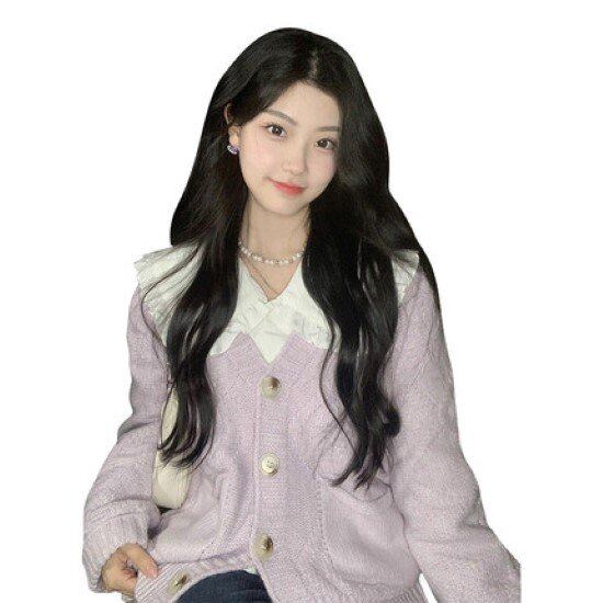ニットカーディガン レディース カーディガン パープル 紫 パステルカラー 長袖 秋冬 カジュアル お出掛け おしゃれ ボタン ポケット Vネック 羽織 ライトアウター セーター ニットカーディガン
