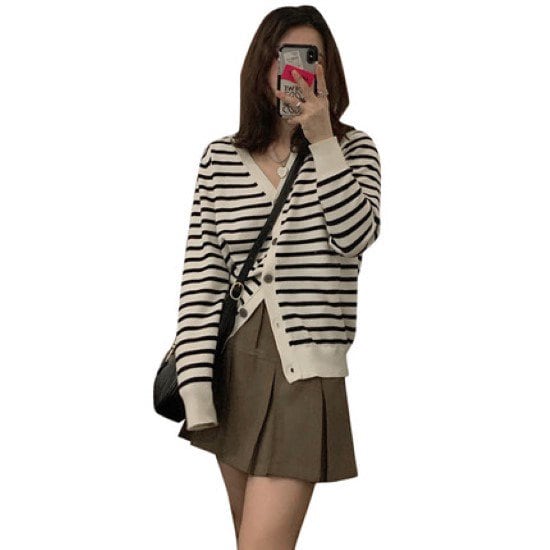 ニットカーディガン レディース カーディガン セーター トップス 羽織 ボーダー コントラストカラー Vネック 長袖 カジュアル お出掛け おしゃれ ストライプ 秋冬 ニットカーディガン セーター