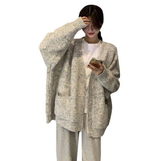 ニットカーディガン レディース カーディガン 羽織 アウター Vネック シンプル 無地 長袖 ポケット ラフ ゆったり ルーズシルエット カジュアル お出掛け グレー ホワイト ニットカーディガン