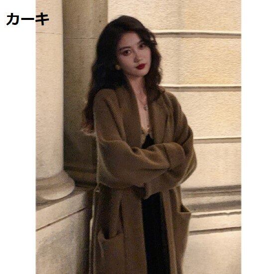ロングコート レディース ニットコート コーディガン カーディガン ロング丈 アウター 羽織 秋冬 シンプル 無地 ウール 暖かい ポケット ウエストベルト カジュアル お出掛け きれいめ コート