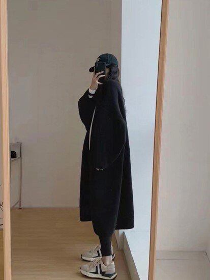 ロングコート レディース ニットコート コーディガン カーディガン 羽織 アウター 秋冬 暖かい ロング丈 長袖 シンプル 無地 ゆったり ルーズシルエット ラフ デイリー 定番 ロングコート ニット