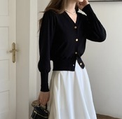ニットカーディガン レディース カーディガン セーター ニット Vネック フロントボタン 長袖 パフスリーブ シンプル 無地 カジュアル きれいめ デイリー オフィス カーディガン 羽織 セーター