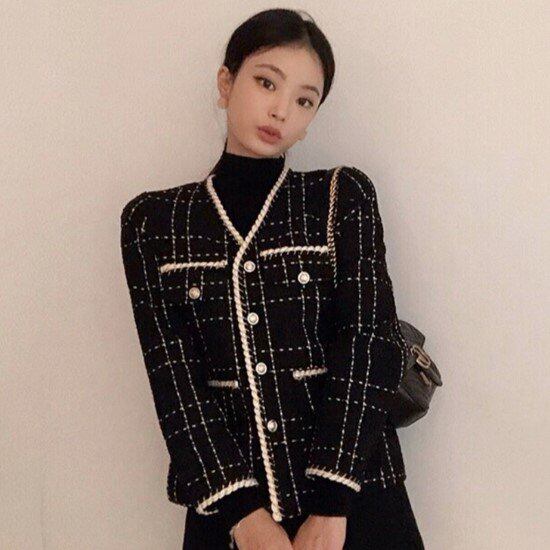ツイードジャケット レディース ジャケット アウター 羽織 Vネック ツイード ショートコート 長袖 きれいめ ボタン ポケット チェック柄 格子柄 フロントボタン シングルブレスト おしゃれ