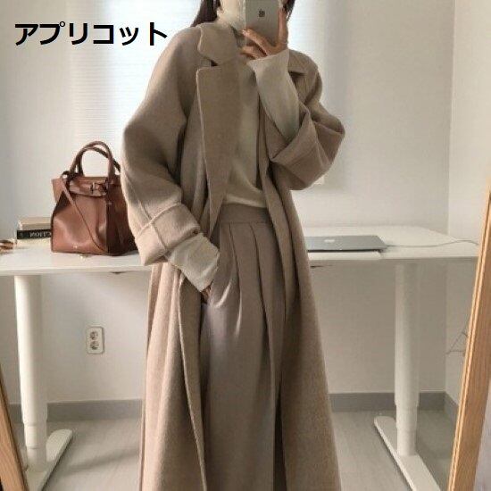 ロングコート レディース コート ロング丈 アウター 秋冬 厚手 暖かい ウエストベルト シンプル 無地 襟あり カジュアル きれいめ お出掛け ゆったり ロングコート レディース コート アウター
