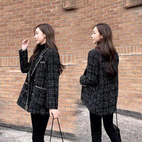 シックなブラックのツイードジャケット。
