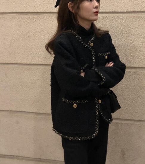 ツイードジャケット レディース ジャケット 羽織 アウター ゴールドボタン ノーカラー ブラック 長袖 きれいめ エレガント おしゃれ お出掛け フォーマル ゆったり 黒 ツイードジャケット アウター