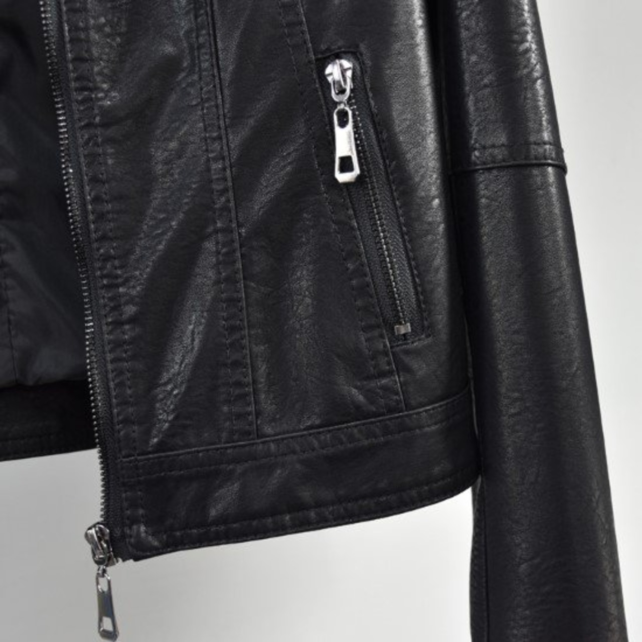 レザージャケット レディース ジャケット 羽織 アウター スタンドカラー 長袖 カジュアル お出掛け 黒 ブラック ジッパー 大きいサイズ クール おしゃれ シンプル 無地 ウォッシュドレザー