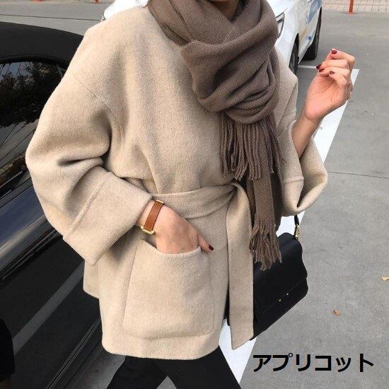 ショートコート レディース コート 羽織 アウター 秋冬 ショート丈 Vネック ウエストベルト シンプル 無地 カジュアル お出掛け きれいめ 長袖 ポケット ゆったり ショートコート アウター 羽織