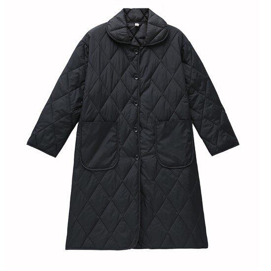 キルティングコート レディース コート キルティングジャケット ジャケット アウター 羽織 長袖 襟あり ブラック 黒 ミディ丈 シンプル 無地 ボタン ポケット カジュアル きれいめ キルティング