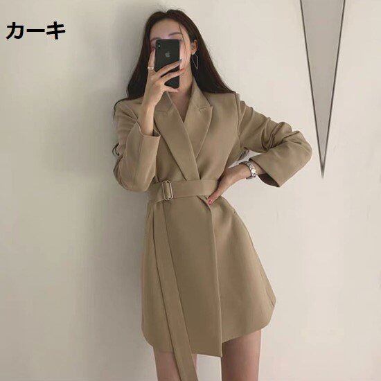 ミドル丈ジャケット レディース コート 襟あり ウエストベルト シンプル 無地 カジュアル お出掛け きれいめ 羽織 アウター ポケット オフィス 通勤 ミドル丈ジャケット レディース コート