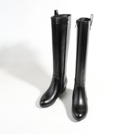 ロングブーツ レディース ジョッキーブーツ 靴 シューズ ブーツ ロング丈 ローヒール 秋冬 黒 ブラック サイドジッパー シンプル 無地 歩きやすい カジュアル お出掛け きれいめ ロングブーツ