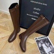 落ち着いたカラーのロングブーツ。