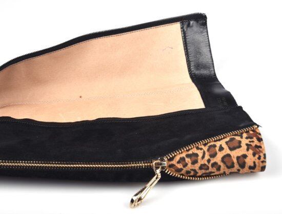バックにちらりと見えるレオパード柄がおしゃれ。